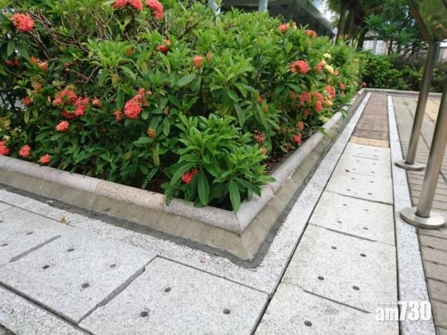 圖示位於彩盈邨附近的彩雲道休憩處採用石芯修飾花槽邊。