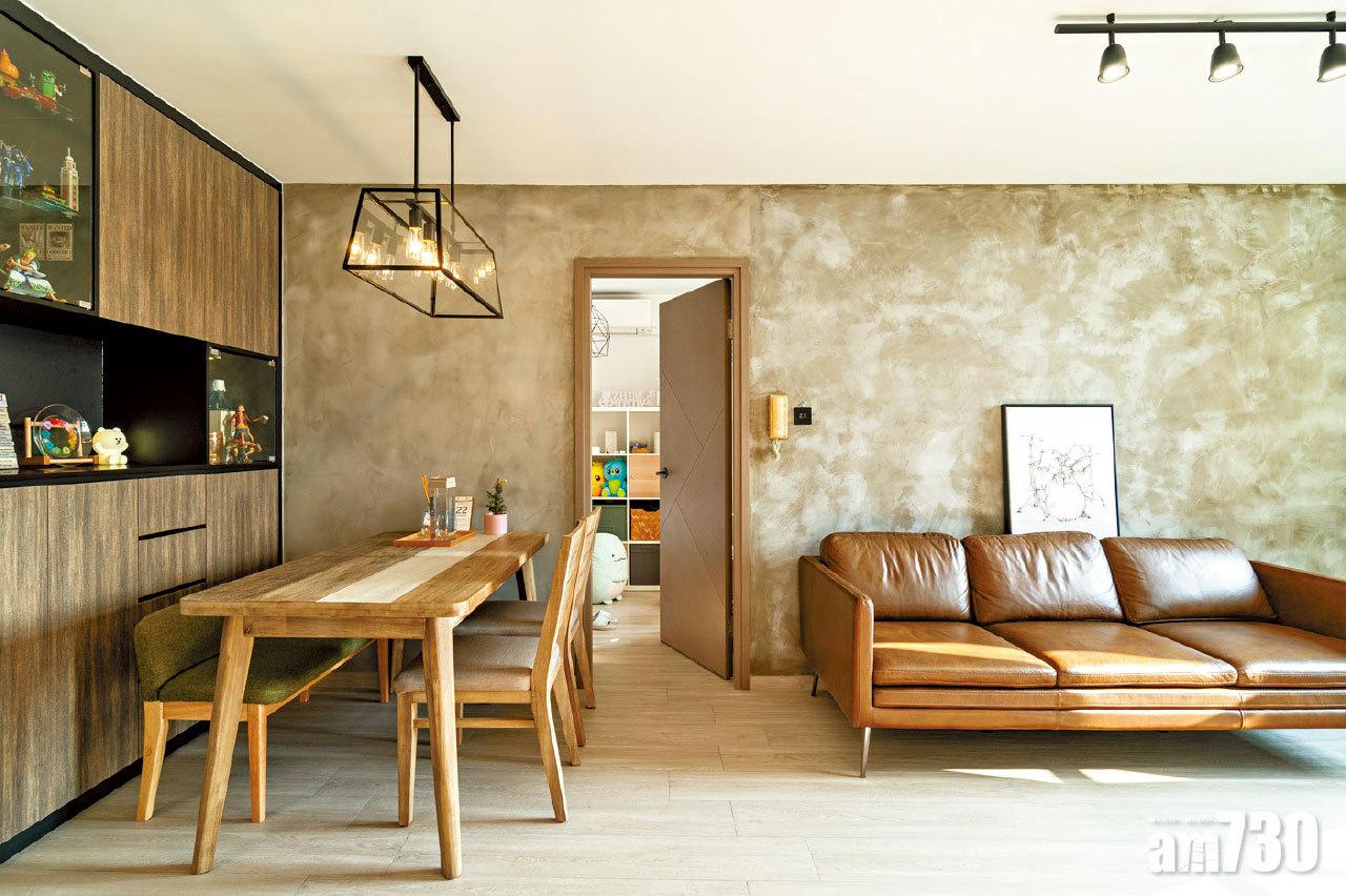 ▲女戶主偏好日系風,而男戶主則喜歡工業風。經協商後,雙方決定嘗試調和兩種風格來裝修,如以水泥牆作為特色牆,再配搭大量實木家具。
