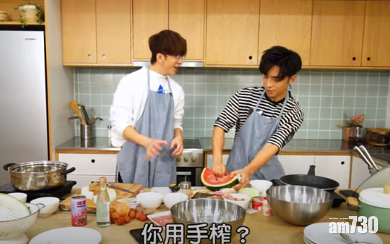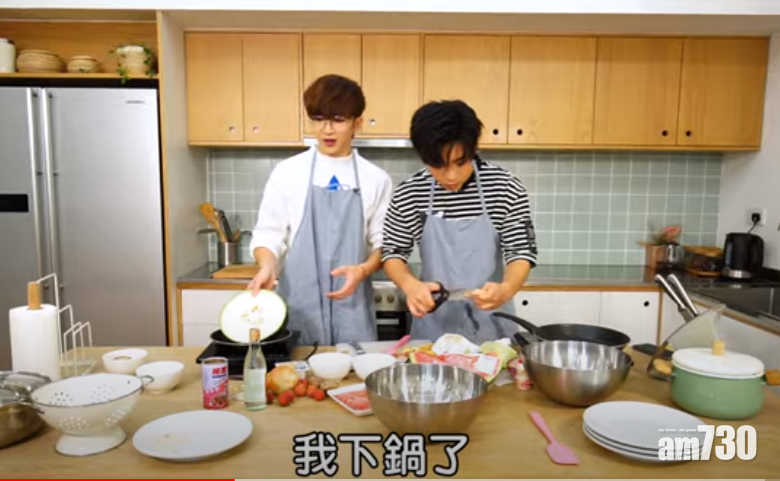 MIRROR成員Anson Lo(盧瀚霆)偶爾會在個人YouTube頻道的下廚,上周他請來好兄弟Edan(呂爵安)來比拼廚藝,兩人要在限時內以各人分配的食材炮製一道菜,Anson Lo獲分配冬瓜、洋葱、豬肉、荔枝和冬菇等食材,Edan則有西瓜、雞翼、椰菜和益利多等食材,兩位手忙腳亂的大男生,非常爆笑。Anson Lo望著枱上的冬瓜,不知從何入手,情急下打電話問阿媽:「冬瓜使唔使煮?」而Edan則方便快捿地徒手榨西瓜汁,嚇得Anson連忙問:「你洗咗手嗎?」