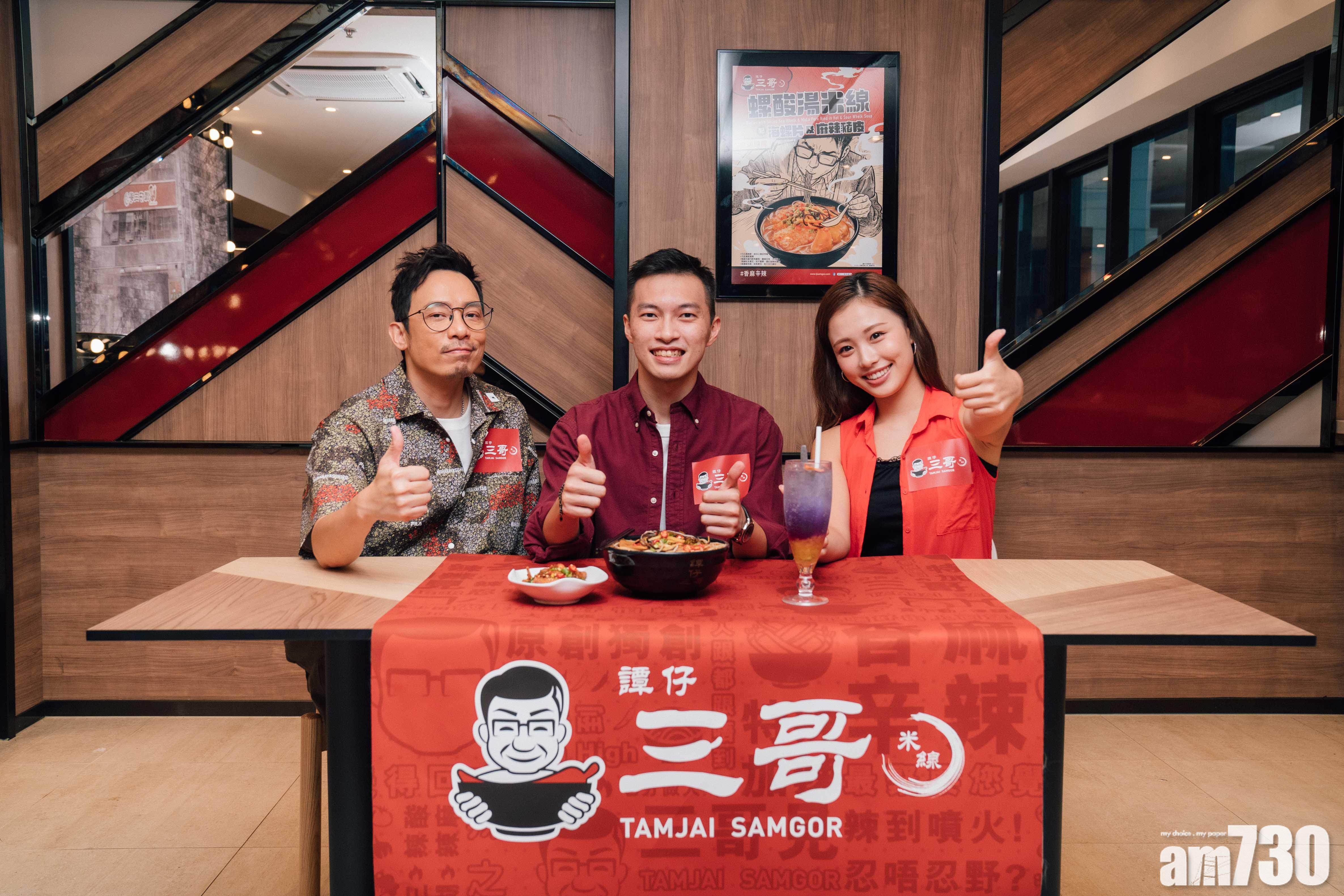 譚仔三哥找來忠粉香港羽毛球代表伍家朗、滑冰女神馬曉晴,聯同Viu TV台柱「全能強尼」搶先試食「螺酸湯米線配海螺片」及「麻辣豬皮」,伍家朗品嘗後大呼過癮:「過癮!太過癮!我愛吃辛辣食物時,辣出一身汗的感覺,就像我在球場上盡力揮球拍後運動的快感,而螺酸湯米線配海螺片,及麻辣豬皮更加入了獨特的酸爽滋味,更令人欲罷不能!」