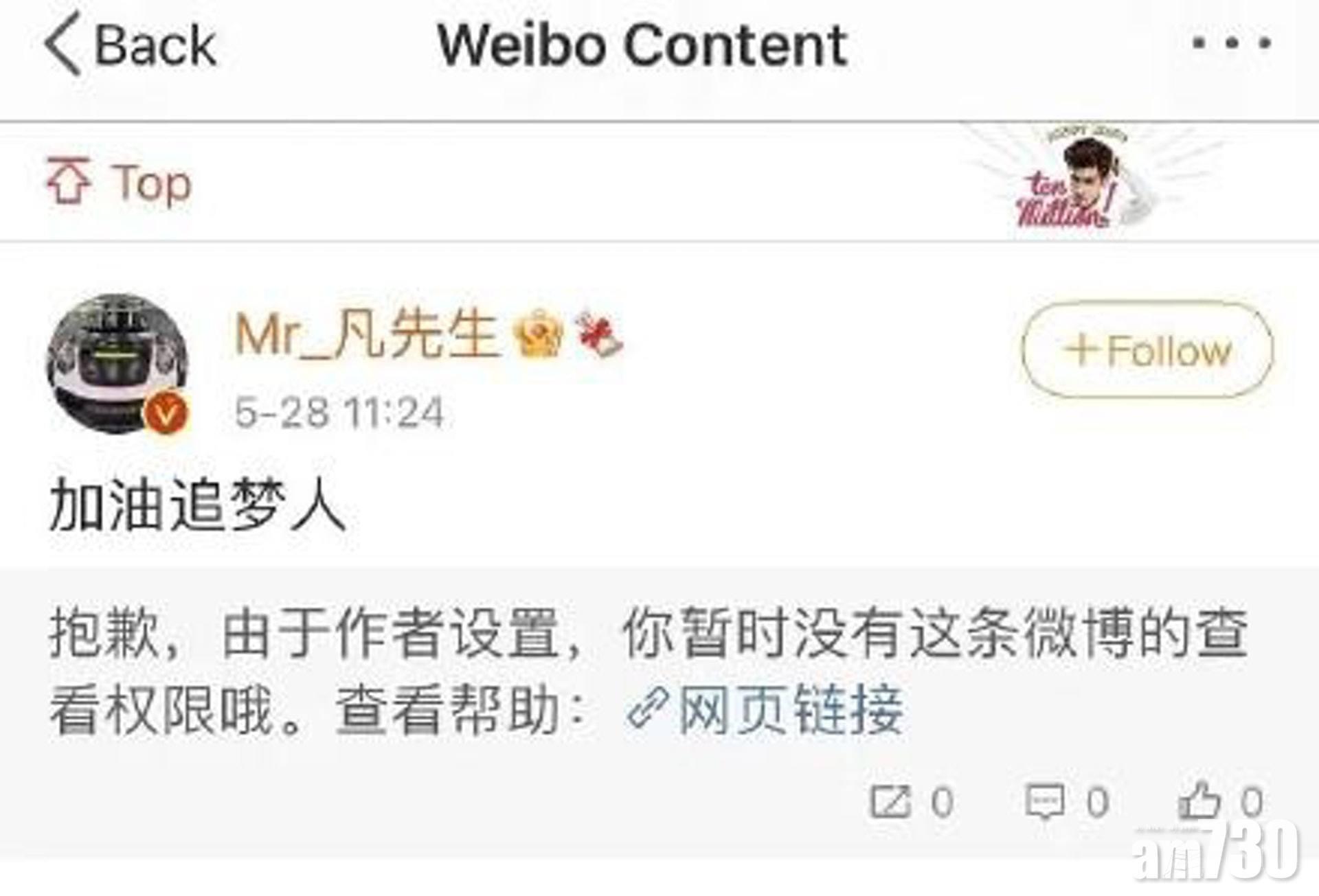 央視原本在微博分享吳亦凡的新歌,但現時已被移除。
