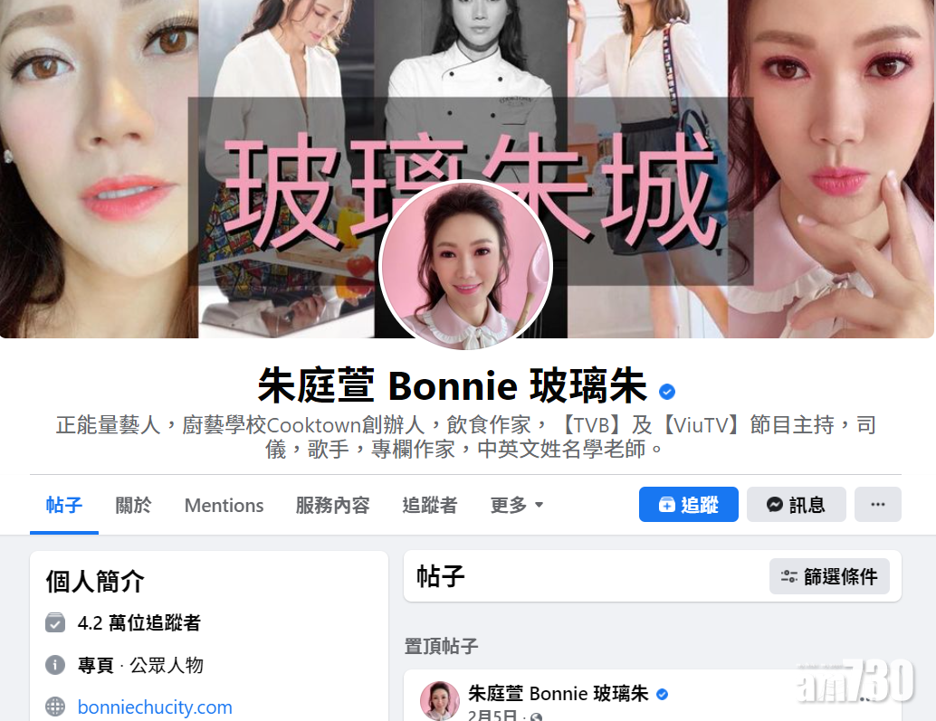 玻璃朱的專頁自稱是ViuTV節目主持。