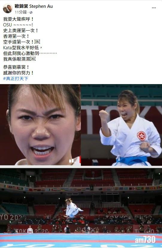 圈中不少藝人留言祝賀劉慕裳為香港再添多一面銅牌,過去汪明荃一直未有就港隊奪得獎牌發文,今次罕有拍下電視畫面,留言說︰「港隊劉慕裳叻女!香港再添銅牌!㳟喜!」