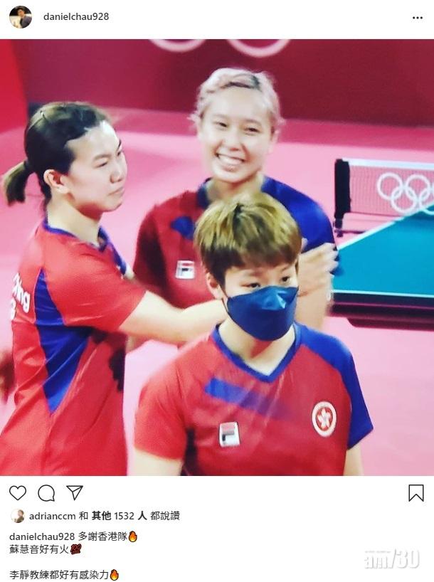 香港3名乒乓港隊代表李皓晴、蘇慧音及杜凱琹成功擊敗德國隊,奪得銅牌,是香港史上第二面乒乓獎牌。不少藝人在社交平台發文祝賀。由於李皓晴及蘇慧音同樣來自拔萃女書院,她們的師姐麥明詩隨即出PO說︰「我啲DG師妹好勁抽!!!! #即刻認親認戚」