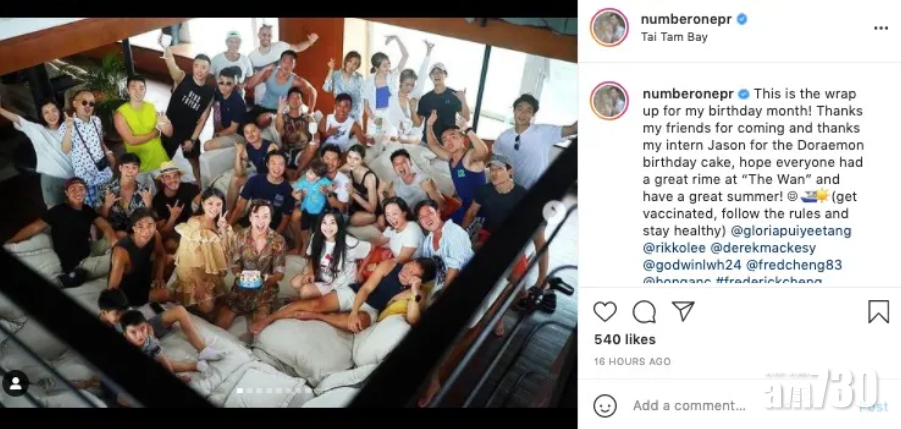 有「天下第一關」之聲的鄭紹康,日前在IG分享在豪華遊艇搞派對,傅明憲、鄭俊弘和何雁詩、鄧佩儀、麥大力等應邀出席,各人均在社交平台分享活動照,唯獨鄭紹康上載了一張大合照,原來今次船P不是幾個人活動,而且逾三十人的派對,不少網民質疑他們有違反限聚令之嫌。(相關新聞︰https://bit.ly/3c7xrww)