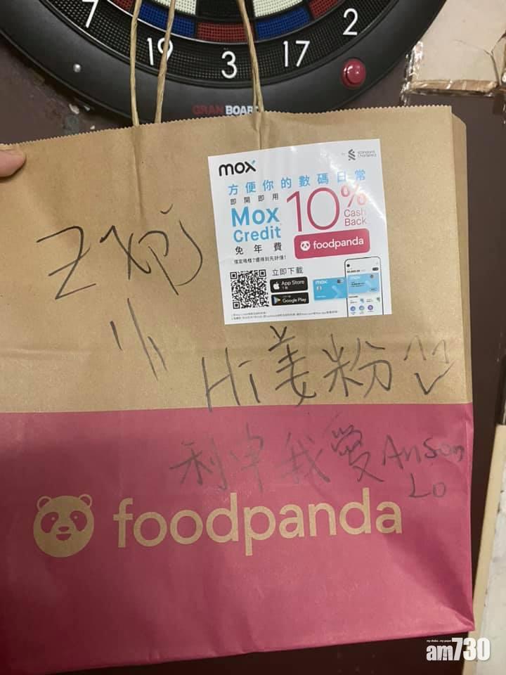 有餐廳職員日前表示收到一張名為「Anson Lo」的顧客訂單,雖然明知這名顧客並非真的Anson Lo,但每當收到這類訂單時,都非常興趣。及後,有網民指自己以「姜濤」的名字訂外賣,沒料到有意外收穫,網民興奮表示他收到的外賣紙袋,竟然是神徒親手回覆的訊息,對方寫道︰「Hi!姜粉,利申我愛Anson Lo。」有網民笑言「感覺可以譜出一段姻緣。」