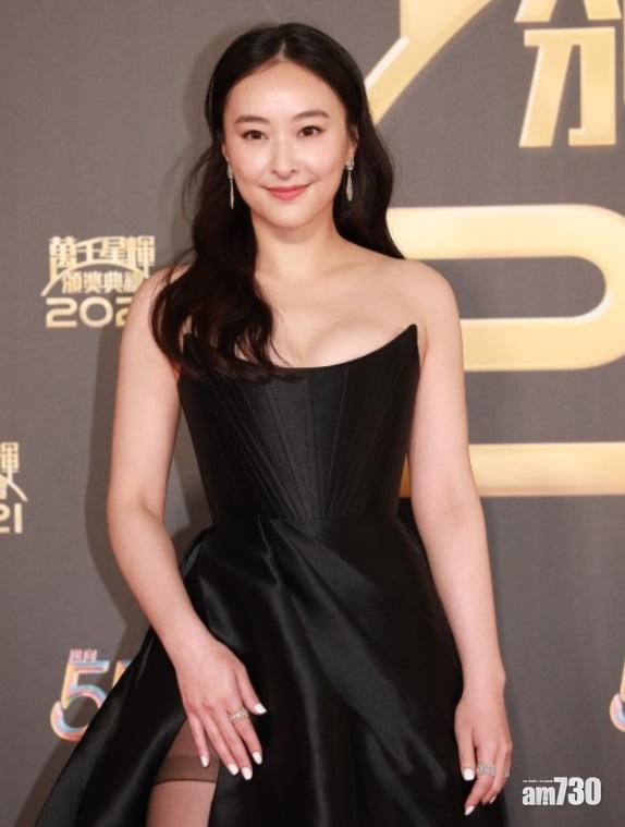 《萬千星輝頒獎典禮2021》於今晚8點在電視城舉行,鍾嘉欣提早回港為奪視后做準備,她以中性打扮亮相紅地氈,但內以透視魚網加bra top上陣,有型有款。她表示已經很久沒試過著高踭鞋出席活動,非常不習慣出席頒獎禮。