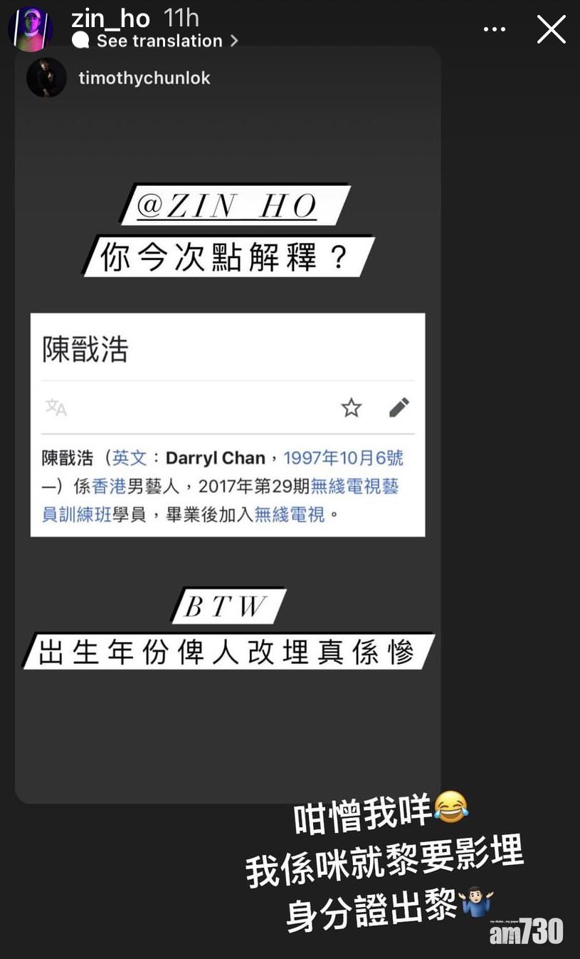陳戩浩笑言要拎身份證來澄清。(陳戩浩IG)