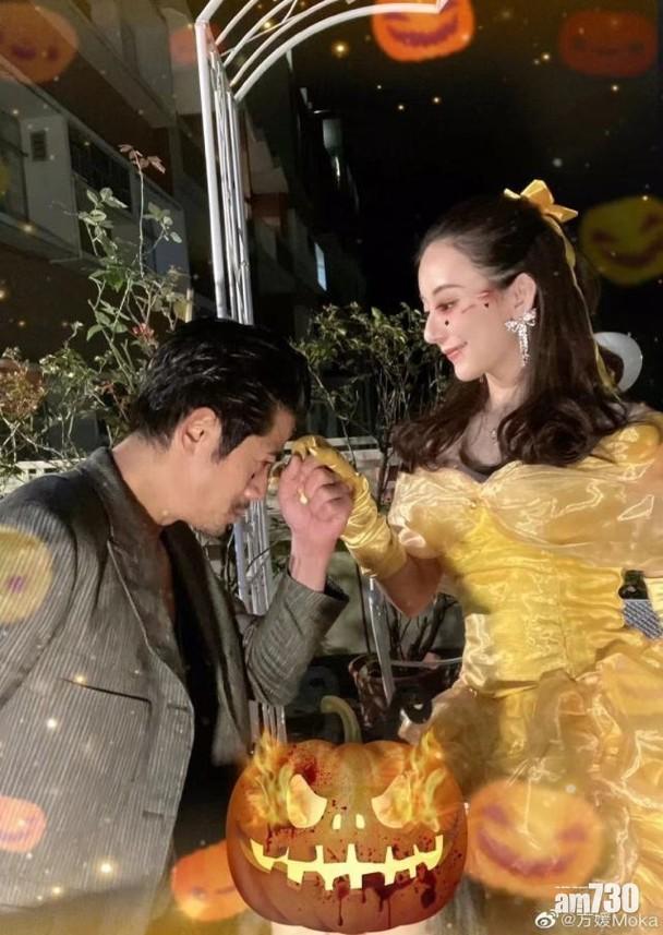 郭富城與方媛(Moka)由拍拖、結婚到成為父母,二人的恩愛程度有增無減,每逢大時大節也會大方合照。昨日萬聖節,向來著重節日的Moka在微博分享她扮《美女與野獸》的「貝兒」,身穿西裝的郭富城就半下跪,並將老婆的手放到頭前,畫面似足童話故事書中的公主與王子。