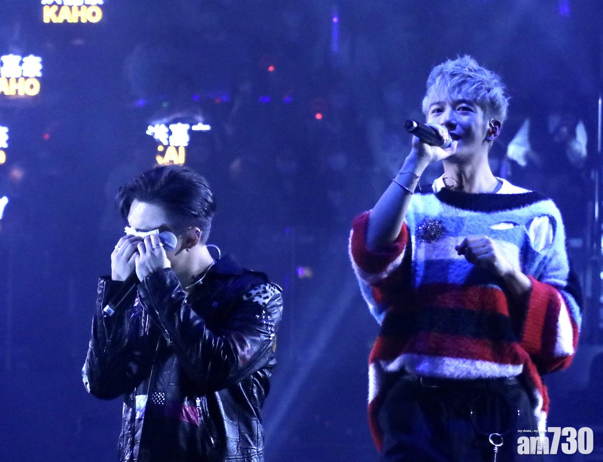 當音樂會接近尾聲,「賦豪CP」合體唱《勞斯萊斯》,兩人又拖又攬十分溫馨,Kaho更為MC抺汗,令全場粉絲尖叫。接著Kaho語重心長地向MC說,「我年紀比你大,見到咁多人鍾意MC,很欣賞你依然不斷尋求突破,永遠想自己做到最好,希望你在keep住這心態,因為要樂壇走下去要持久耐力,繼續努力和保持謙虛。」
