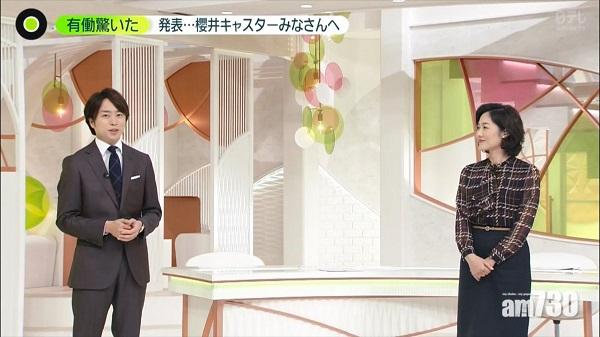 日本尊尼事務所組合「嵐」兩位成員櫻井翔與相葉雅紀,上月28日分別宣布與圈外人結婚,消息震驚日本藝能界。櫻井昨晚婚後首度亮相,主持NTV台新聞節目《news zero》,其主播拍檔有働由美子先恭喜他新婚,之後說:「點解唔早講(結婚),嚇我一跳。」櫻井不好意思地回答:「我好想預早同你哋講,但又感覺強迫你哋保守秘密,最後決定不說了。」