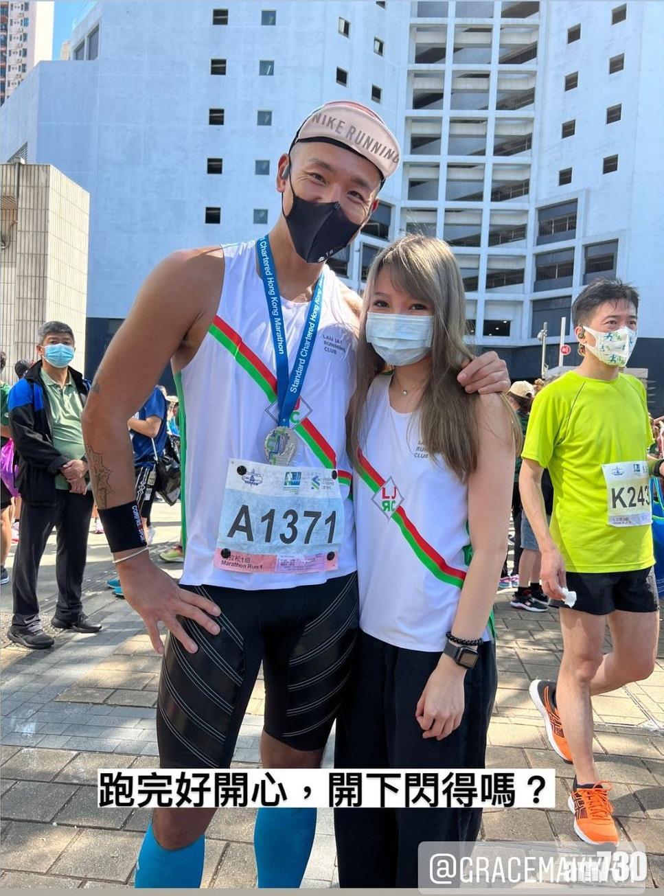 柳俊江女友Grace是香港女子跳高運動員楊文蔚經理人,原來也是今日10K女子組冠軍羅映潮的經理人,羅映潮以36分27秒完成10公里,Grace在限時動態分享了羅映潮、黃啟樂等衝線的照片及片段。