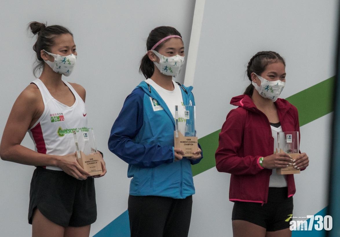 羅映潮(中)以36分27秒完成10公里賽事奪第一,柳俊江女友Grace是其經理人。