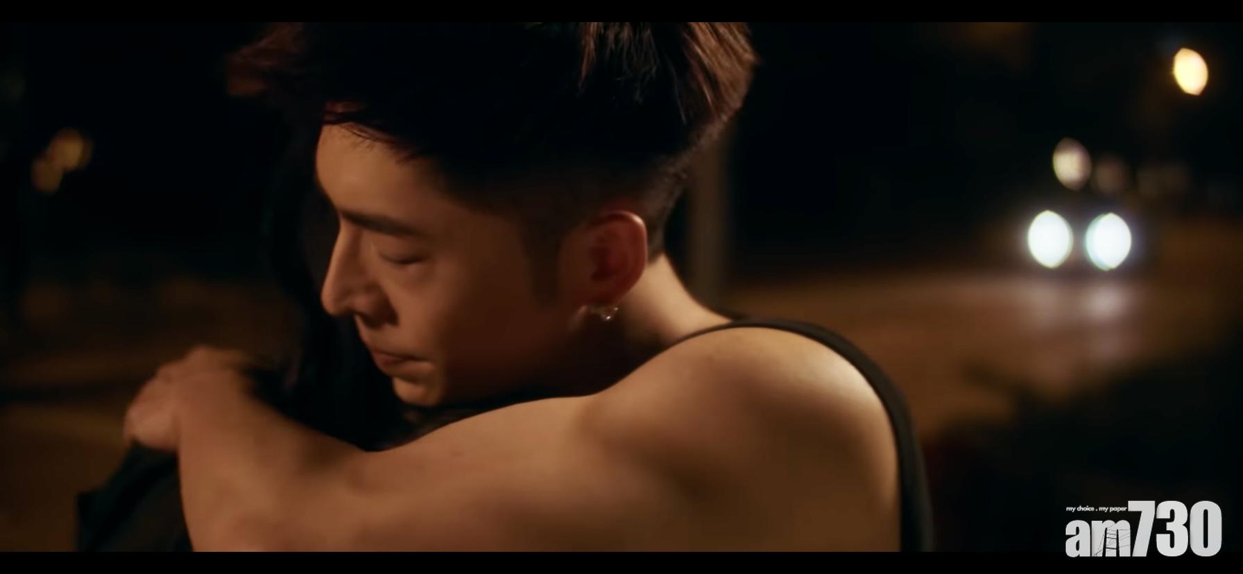 為拍劇集《i.swim》操肌的Edan以結實雙臂護花。(截圖)