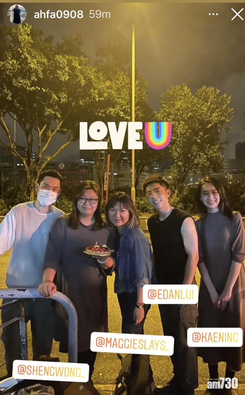 早前花姐生日仍陪伴Edan通宵拍MV,獲團隊送上蛋糕慶生。(花姐IG)