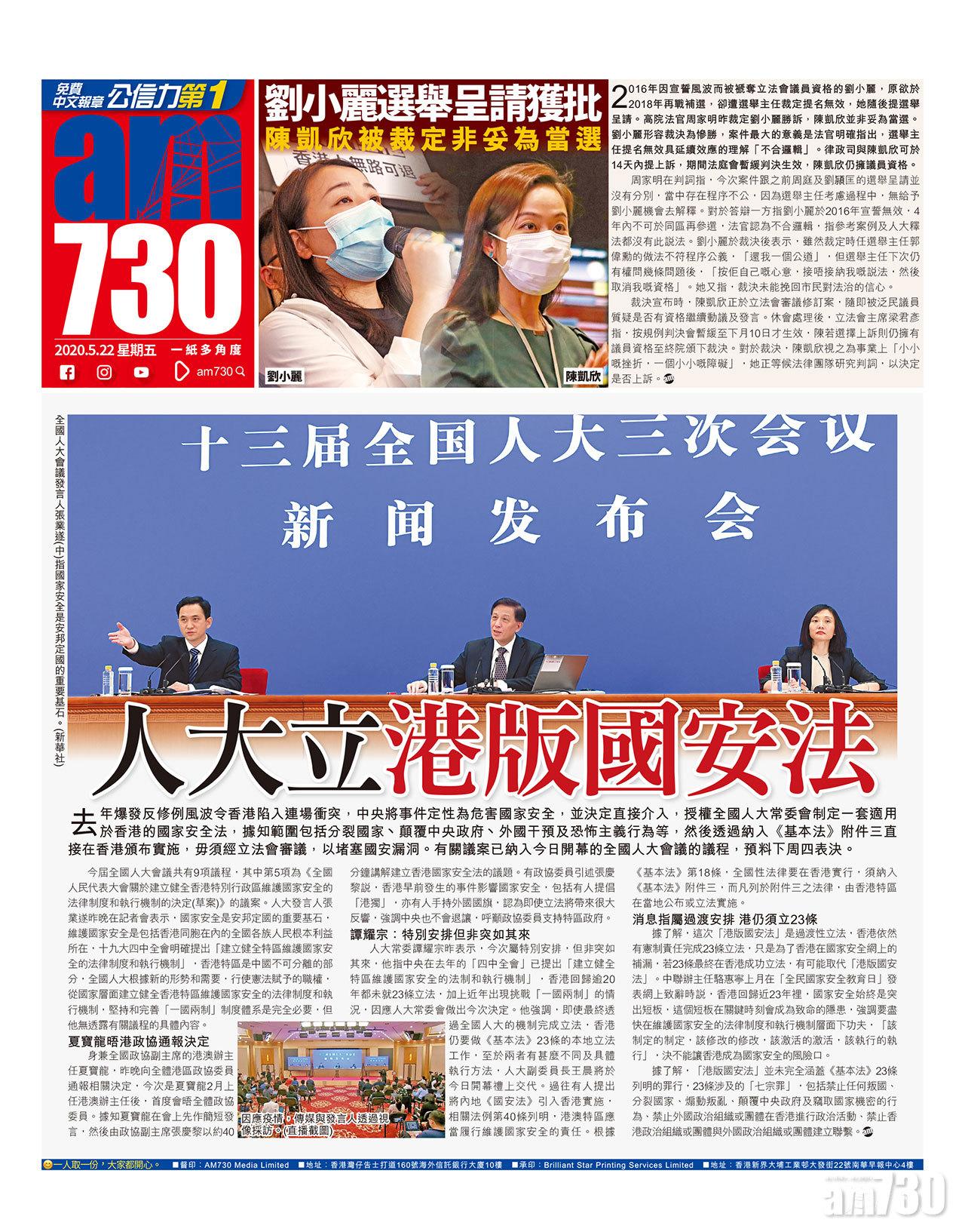 去年爆發反修例風波令香港陷入連場衝突,中央將事件定性為危害國家安全,並決定直接介入,授權全國人大常委會制定一套適用於香港的國家安全法,據知範圍包括分裂國家丶顛覆中央政府丶外國干預及恐怖主義行為等,然後透過納入《基本法》附件三直接在香港頒布實施,毋須經立法會審議,以堵塞國安漏洞。有關議案已納入今日開幕的全國人大會議的議程,預料下周四表決。