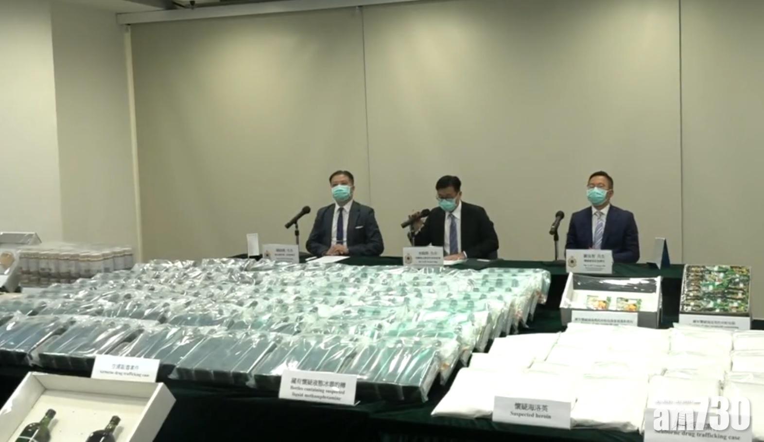 海關破3案檢值逾2.3億元懷疑毒品,拘4男1女。(電視截圖)