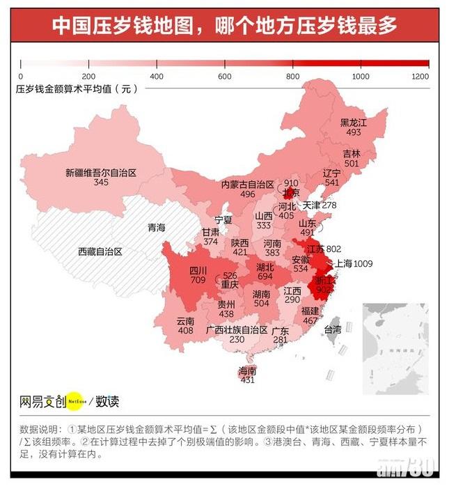 廣東的壓歲錢平均金額最低,只得281元人民幣。(互聯網)