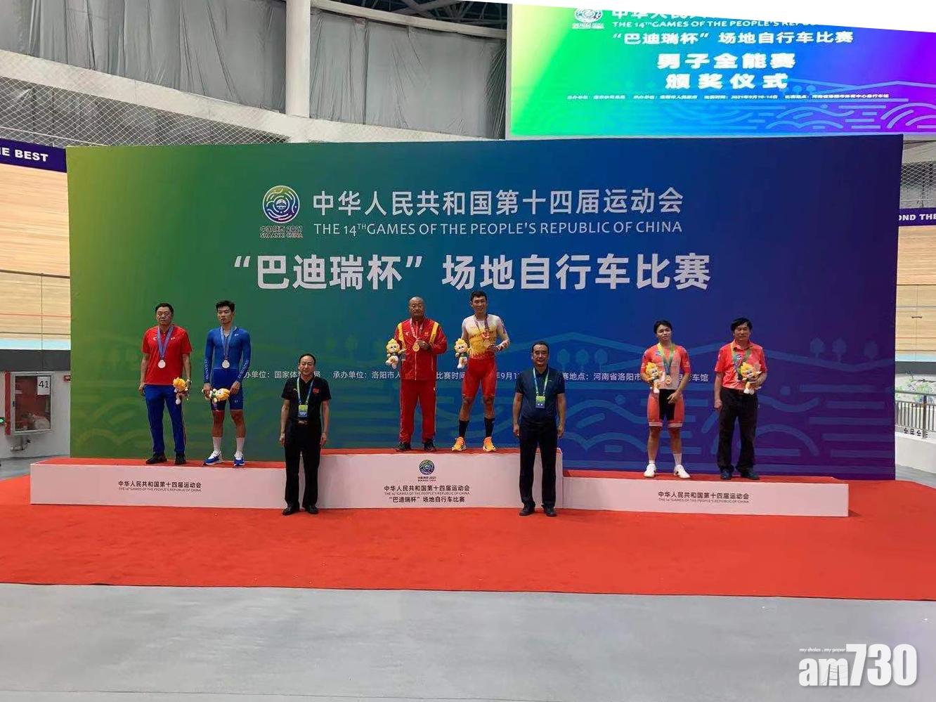 港隊單車運動員梁嘉儒在自行車男子場地全能賽贏得銅牌,是港隊在今屆全運會的首面獎牌,民政事務局長徐英偉致以祝賀。