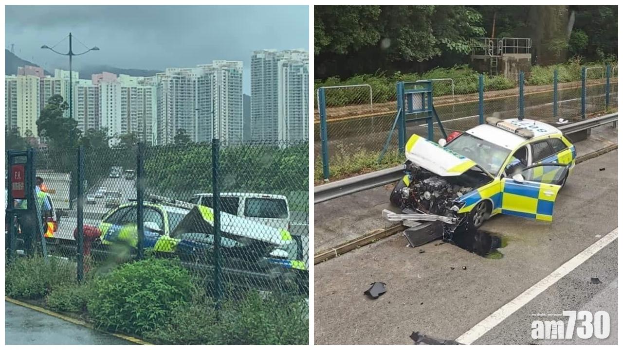 事發時,一輛交通部警車沿北大嶼山公路往大嶼山方向行駛,駛至東涌北公園對開時,警車懷疑因天雨路滑失控自炒,撞向路邊防撞攔再打轉後才停在路壆,車上部分零件散落一地,車頭損毀嚴重。