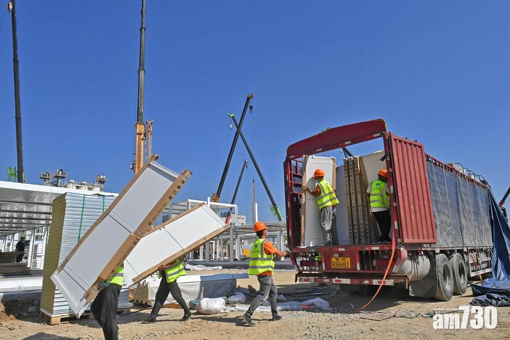 福建泉州泉港區正全速建設方艙隔離點。(中新社)