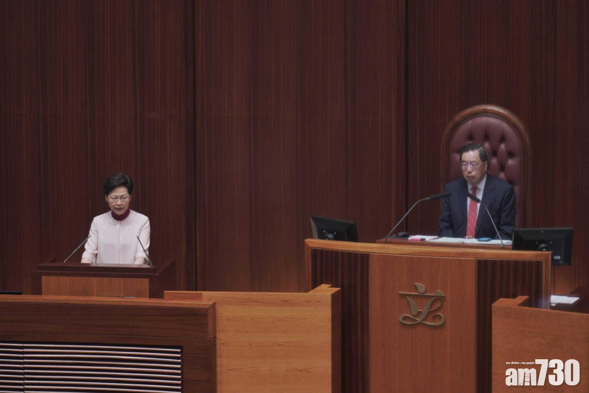 特首林鄭月娥宣讀新一份《施政報告》,內容提到已覓得未來10年、明年至2032年約350公頃土地。(莊振邦攝)