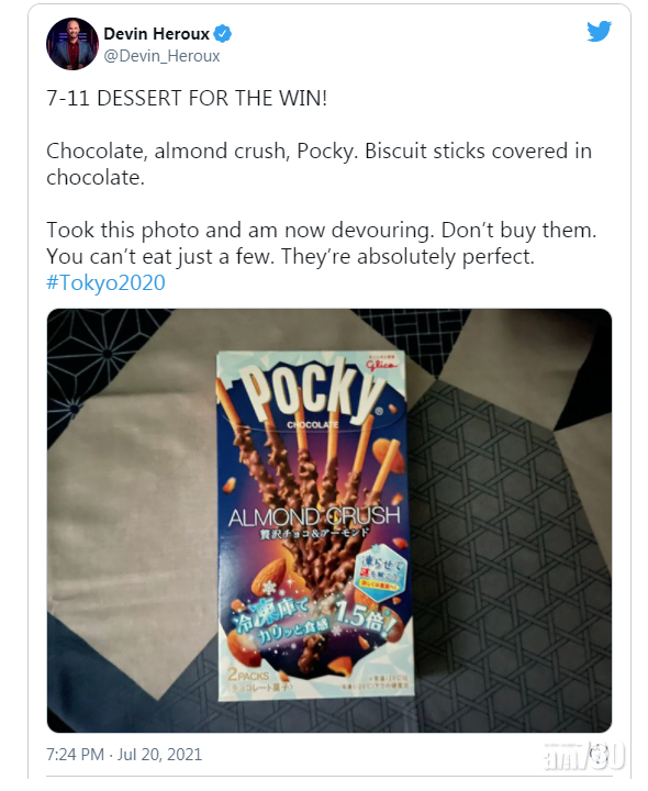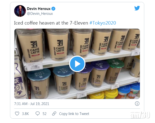 去睇東京奧運,有乜嘢吸引得過比賽?加拿大呢位記者可能會答︰係7仔嘅美食呀!加拿大廣播公司(CBC)記者Devin Heroux正在東奧採訪,他日日不斷在Twitter發貼分享戰況及工作,但注目程度竟遠不及一些「零食po」,事關他被日本的7仔深深折服,大讚是「凍咖啡天堂」(Iced coffee heaven),又說「我將會在這裡花大錢及時間!」去過日本的人,相信都好有共鳴。當地民眾也非常熱情,紛紛留言作私心推介,教他在7仔搵食,而一眾食品當中,Heroux點名有一樣「千祈唔好買」!
