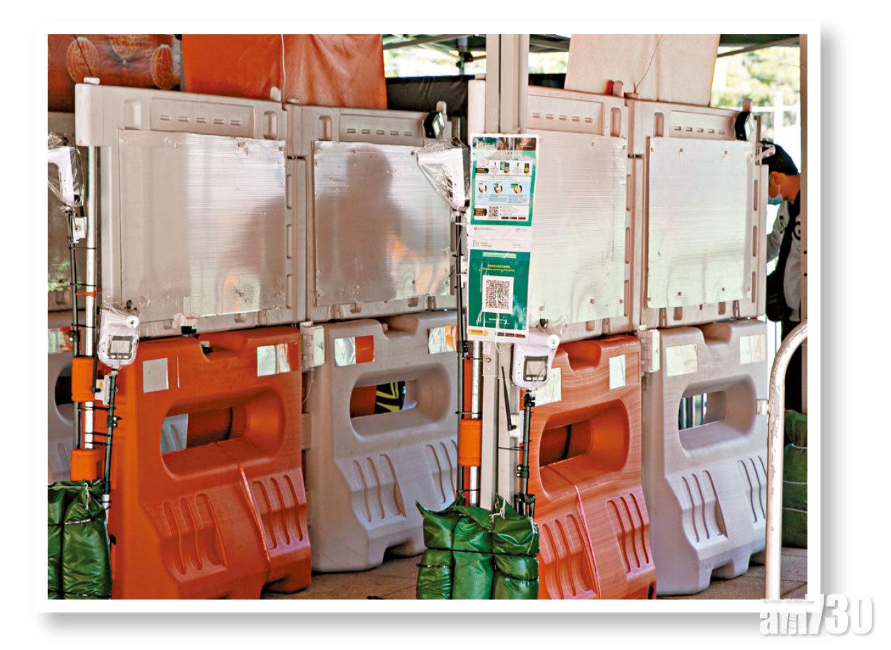 入口設體溫探測儀及「安心出行」碼。(張逸羲攝)