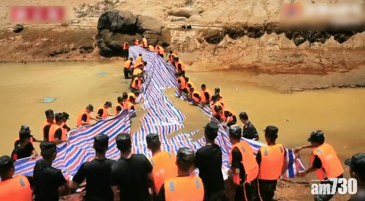 武警協助在水庫建臨時堤壩,以減少漏水量。(互聯網)