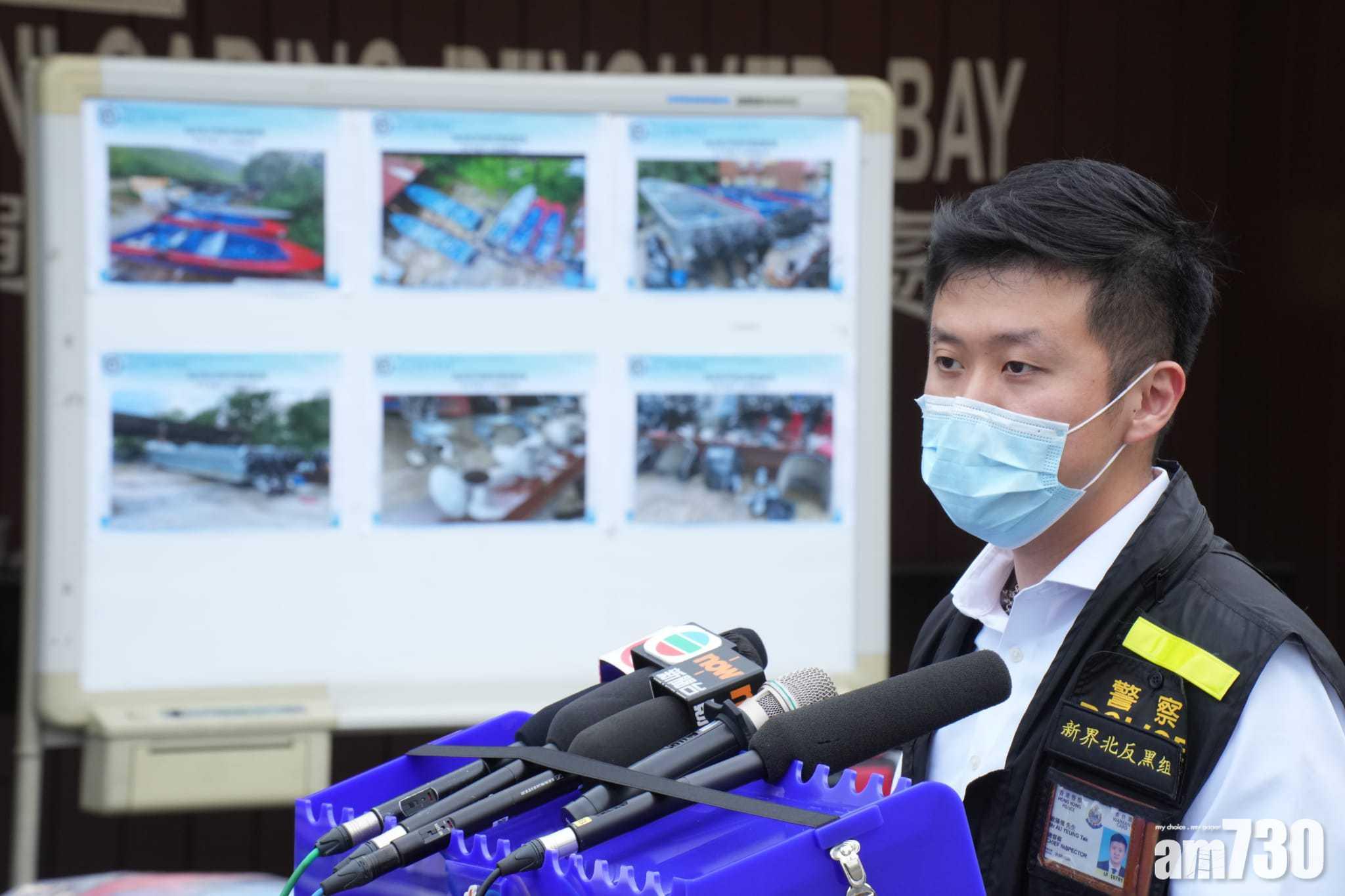 新界北總區反三合會行動組總督察歐陽德表示,警員上星期四持法庭手令,突擊搜查位於粉錦路、佔地逾2萬平方尺的貨倉,發現有5艘快艇放在倉內空地上,當時其中2名被捕男子正為一艘快艇進行拆卸工程。警方其後再在倉內的貨櫃辦公室拘捕另一人,懷疑他是場地看守人。