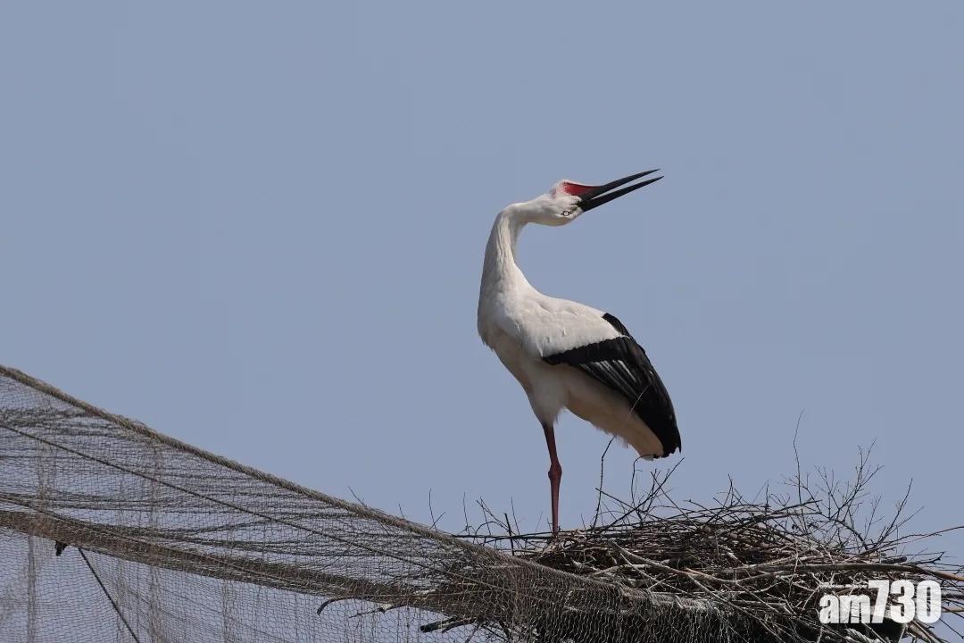 為愛在鳥籠頂築巢的野生東方白鸛。(互聯網)