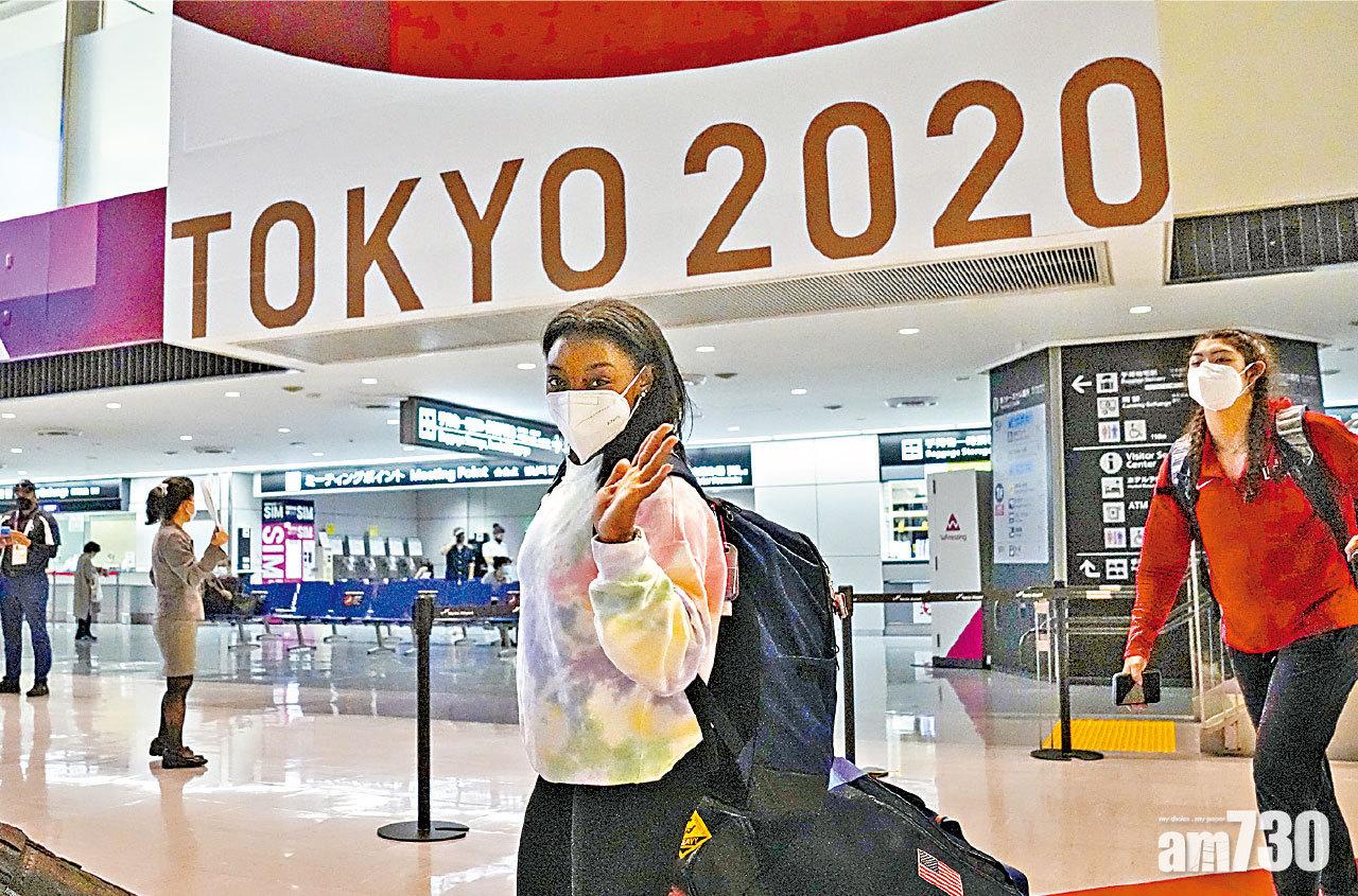 美國「體操女王」比拉絲昨抵達東京。(美聯社)