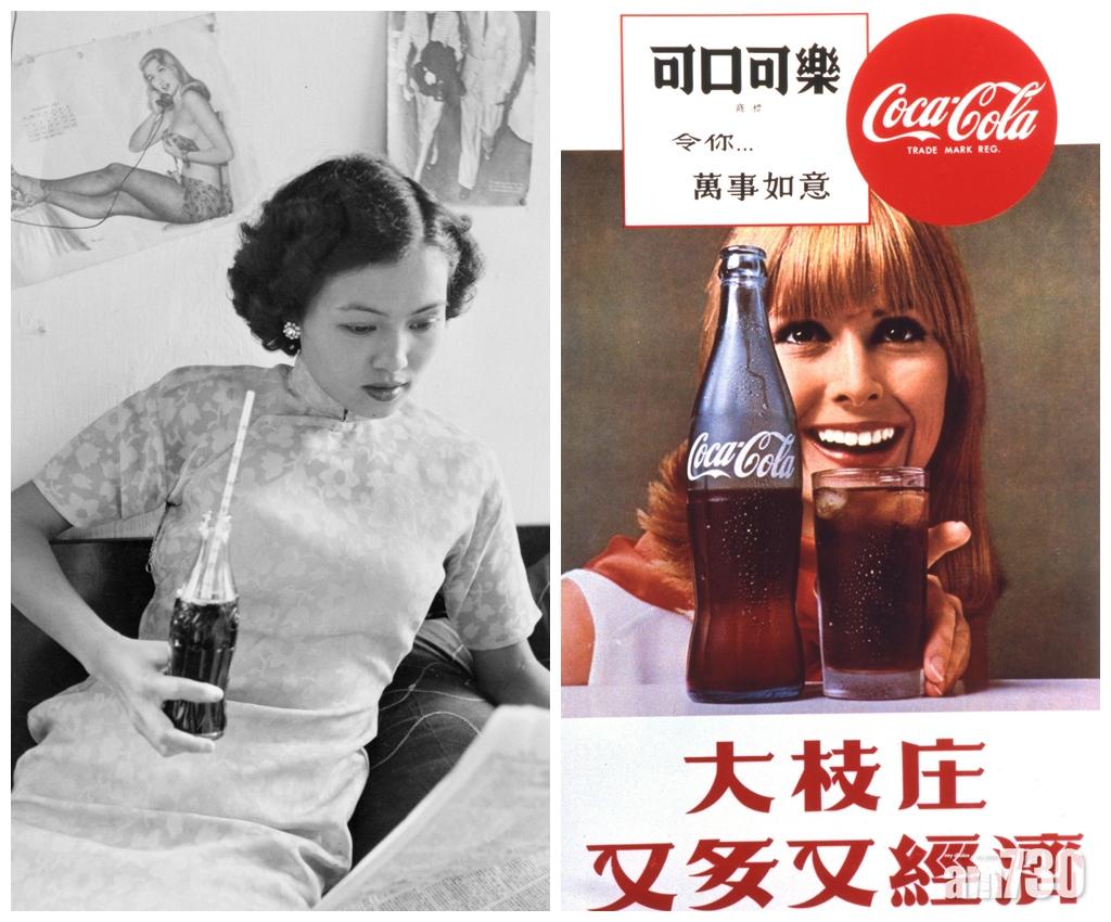 「可口可樂」經典玻璃樽昔日相片及廣告。