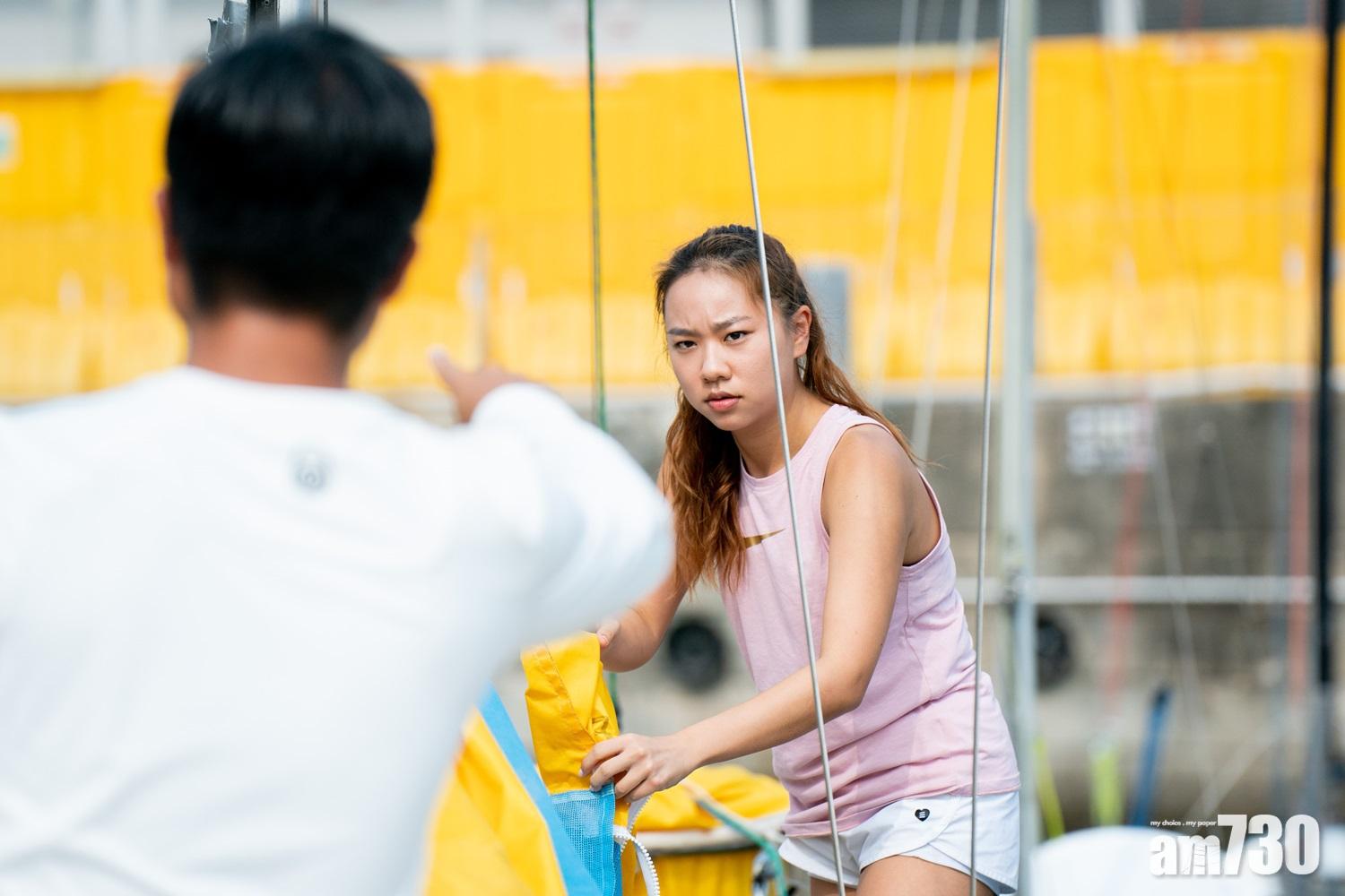 帆船運動教練馬文舜(圖中)與徐曉晴(圖左) 及徐珮蓉(圖右) 於「秋季帆船賽」並肩作戰。(香港遊艇會提供)