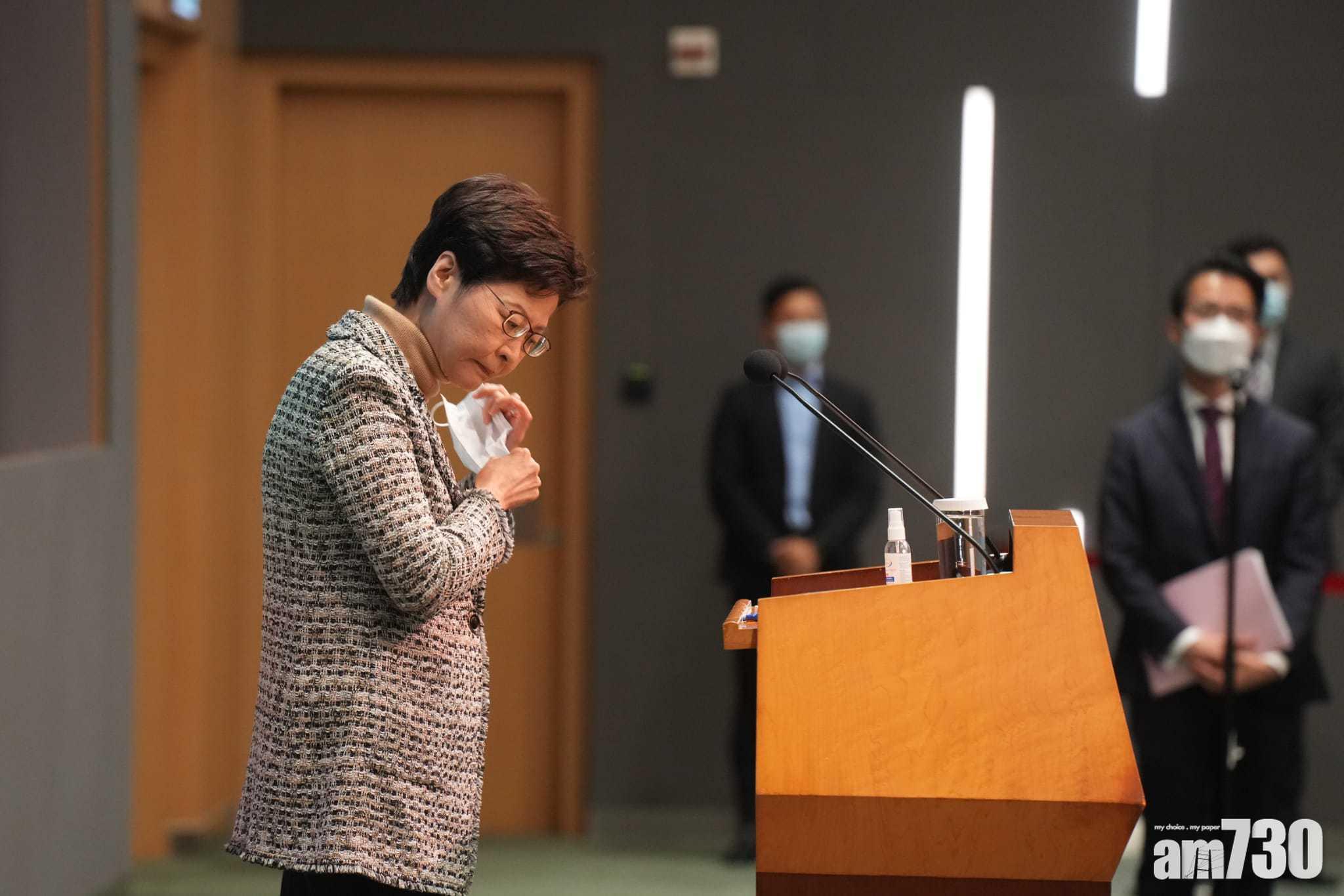 林鄭月娥指,並非因為佩戴口罩發言不舒服才除罩。(陳奕釗攝)