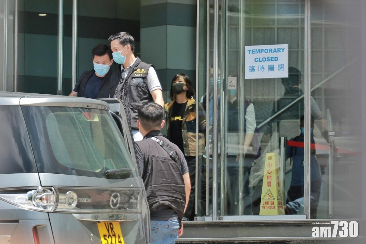 【11:48更新】警方國安處高級警司李桂華在現場會見傳媒時表示,今早6時許聯同刑事部、機動部隊等500多人,拘捕4男1女,涉嫌串謀勾結外國或境外勢力危害國家安全罪,違反國家安全法第29條,警方不排除有更多人被捕。