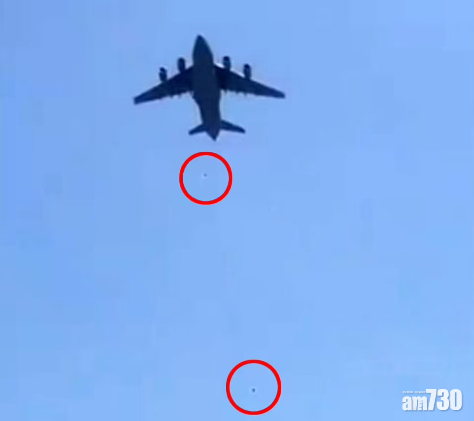 另有人拍到在半空中,有阿富汗難民從軍機墮下。(互聯網)
