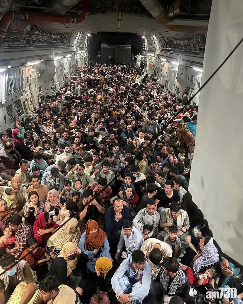 美軍C17運輸機擠滿逃難阿富汗人一幕震撼國際。(路透社)