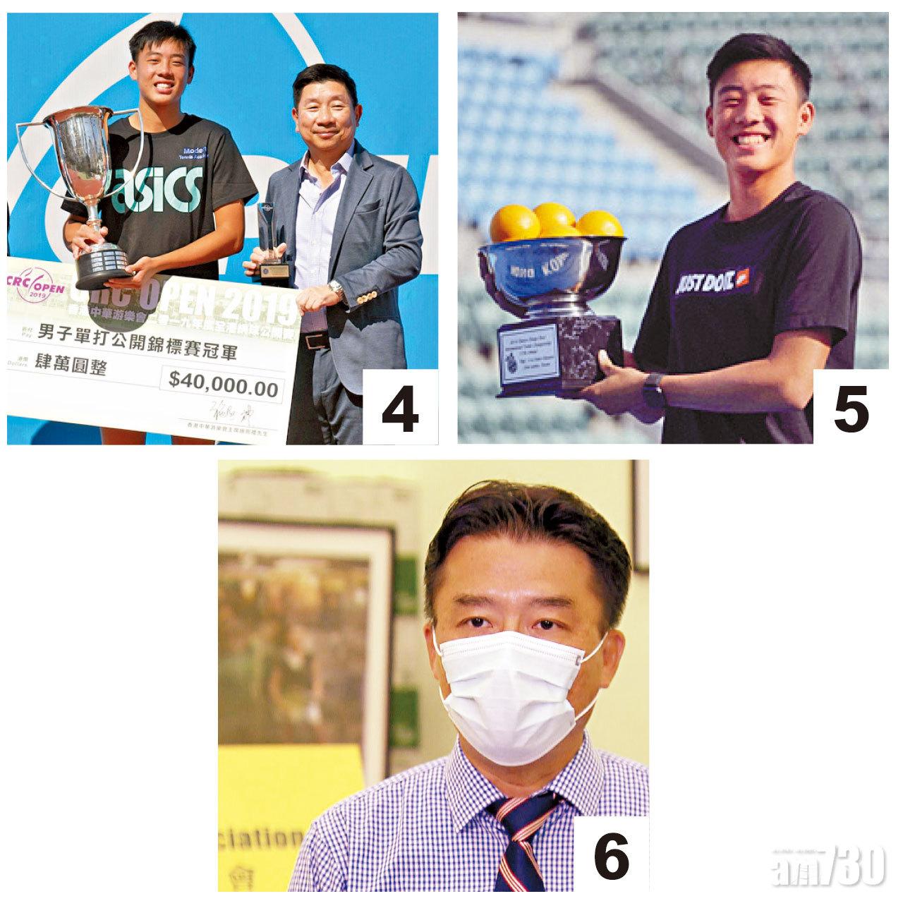 4. 黃澤林(左)15歲時奪本地單打公開賽冠軍。(香港網球總會圖片) 5. 2018年黃澤林奪得Junior Orange Bowl冠軍。(互聯網) 6. 黃悅明支持兒子暫時「放低書本」。