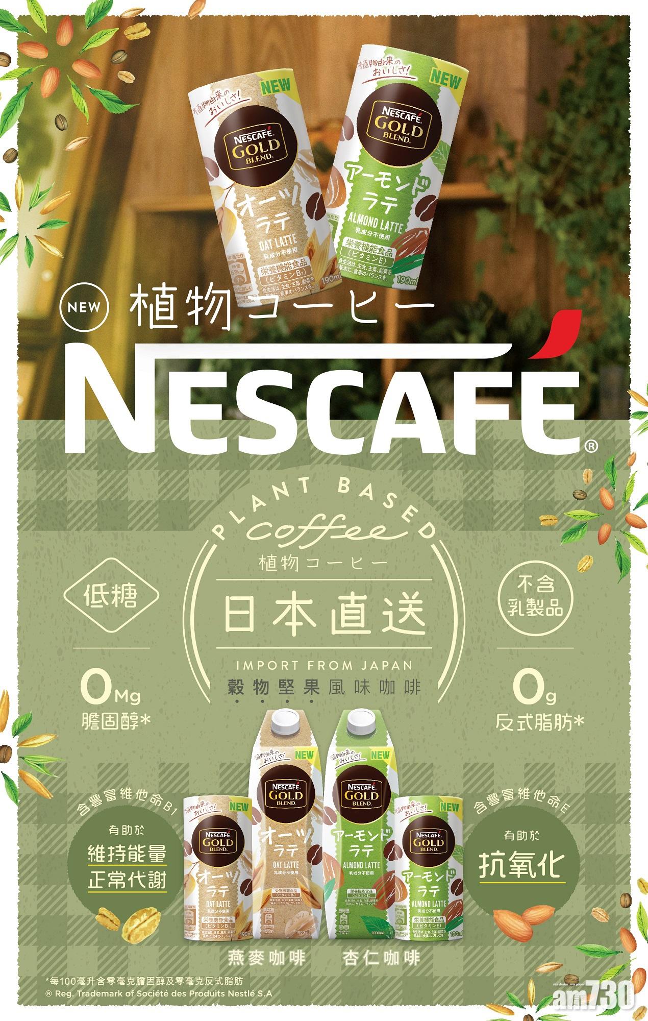 植物性飲食熱潮最近愈來愈流行,隨著「彈性素食飲食法」(Flexitarian Diet)於香港興起,除了以蔬菜素食為基礎,減少吃肉與乳製品,也以植物材料製成的食物代替。雀巢咖啡為此特別引進日本製造的兩款日本直送的植物性即飲咖啡,包括杏仁咖啡和燕麥咖啡,標榜不含乳製品、低糖且含零克反式脂肪和零毫克膽固醇(每100毫升含零克反式脂肪及零毫克膽固醇),卻含維生素B1及維生素E等,維生素E有抗氧化作用。
