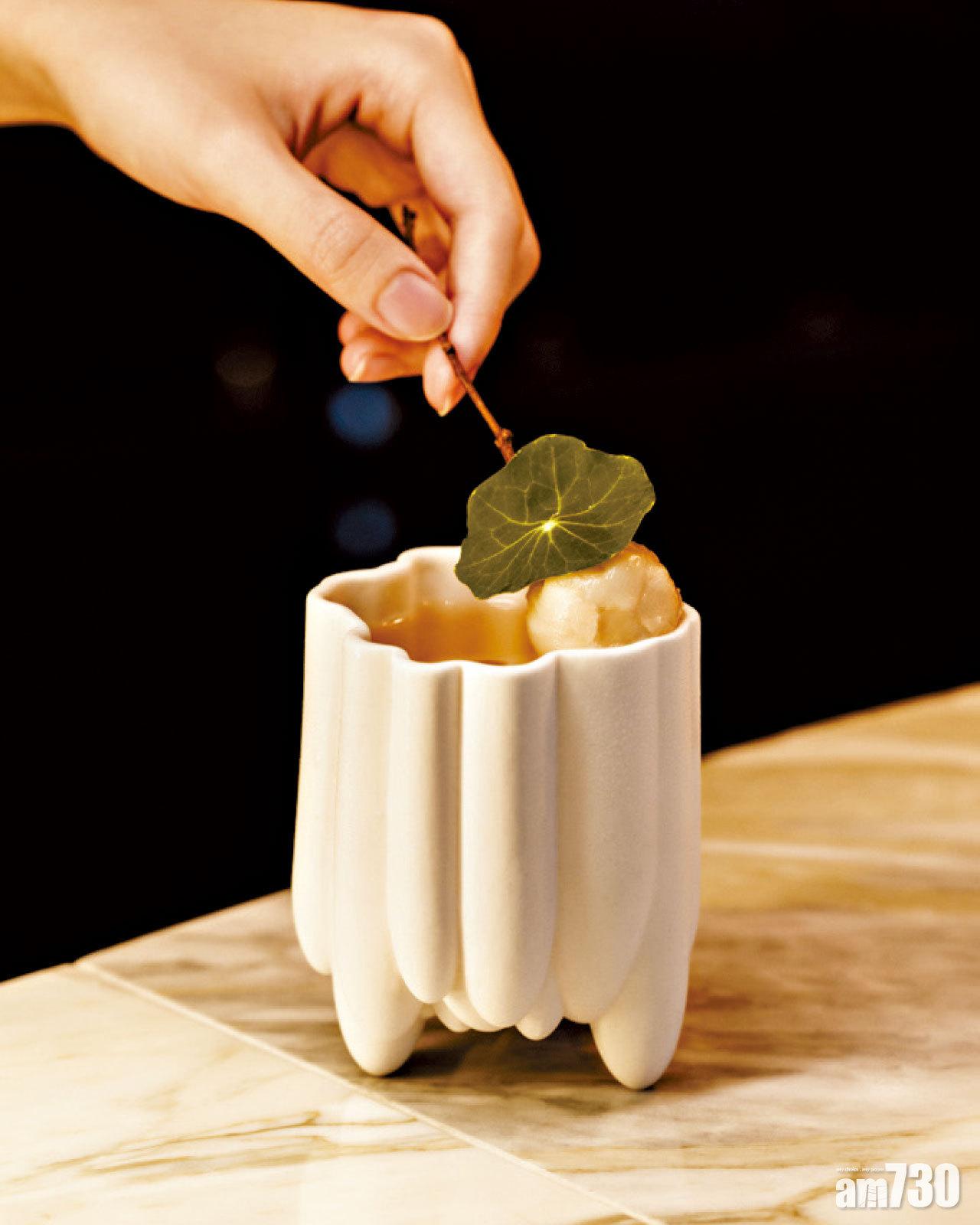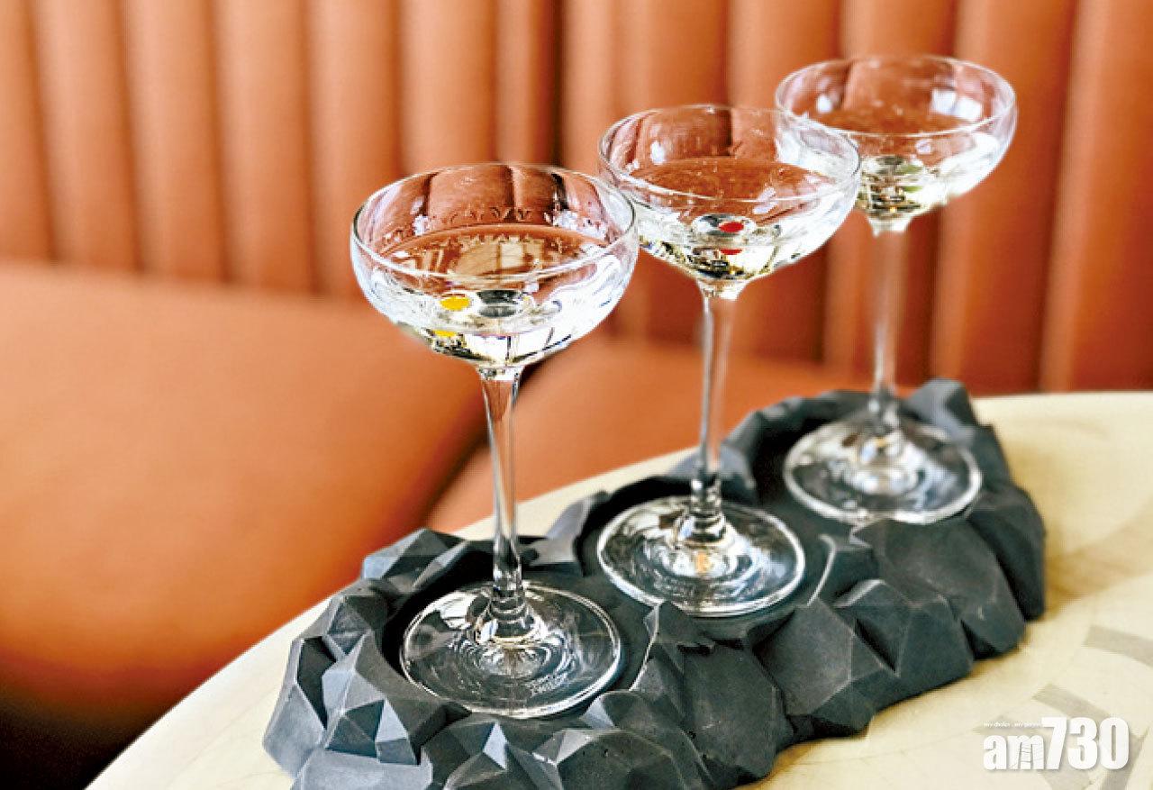 根據時令食材及業界合作計劃不定期更新的雞尾酒單「Canvas」,首個作品「Gimlet Flight」,可分別品嘗到三種氈酒的層次。