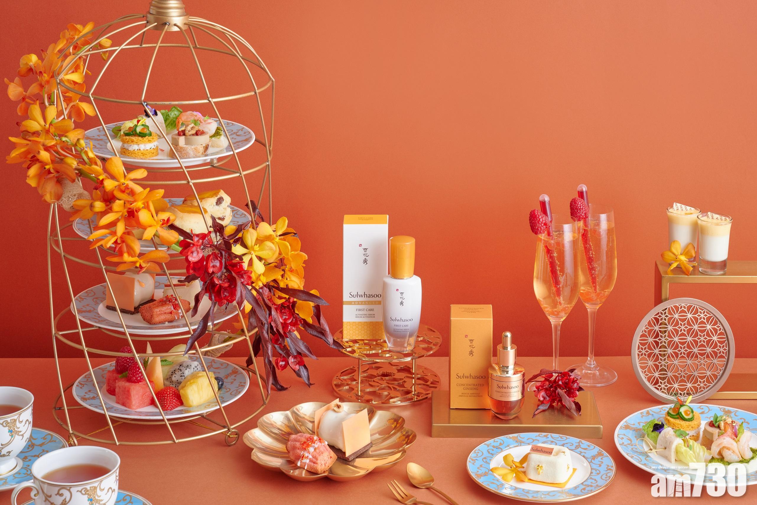夏日「養肌再生」下午茶體驗由氣泡歡迎特飲開始,賓客可親自用滴管在飲品內加入士多啤梨汁,模擬雪花秀人參安瓶的「激活」步驟。及後細嚐置於鮮花佈置的金色鳥籠內之鹹甜美點及自家烘焙英式鬆餅,最後配以新鮮時令水果碟作完美句號,為熾熱的仲夏帶來清新健康體驗。饗客更可獲贈「提・拉・緊」人參抗炎養肌禮品包,感受韓方養生飲食文化之餘,也體驗高效煥活肌膚的人參美容臻品。