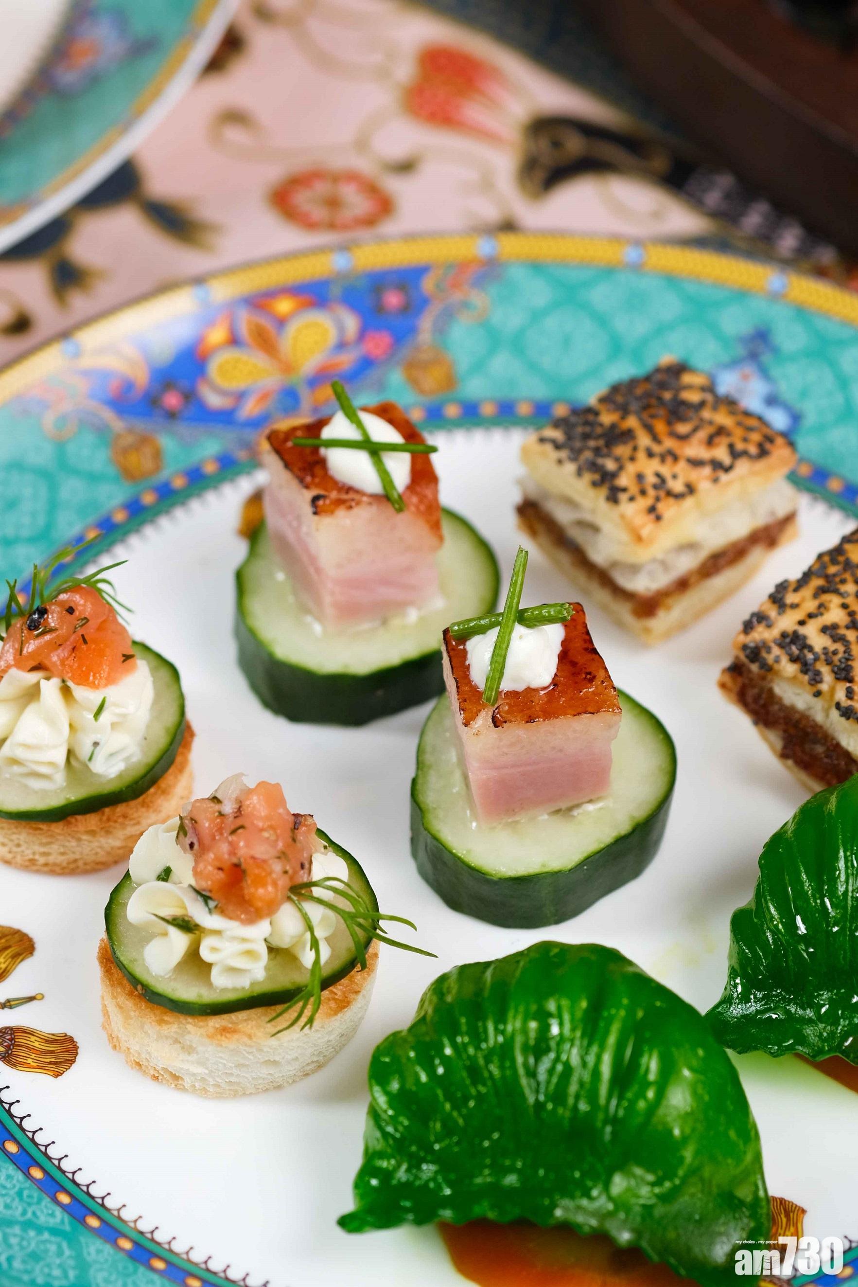 主廚Alexandre Viriot選用夏季時令食材,炮製了數款清新怡人的鹹點:「番茄蟹肉撻」盛載酸甜交錯的番茄莎莎及鮮甜美味的蟹肉,豐富的口感令人一試難忘。油香豐腴的挪威煙燻三文魚,為賣相精巧的「煙三文魚多士」披上嬌嫩的橙粉紅色,亦與爽脆的青瓜絲及雞蛋沙律配搭出平衡有致的味道及質感。