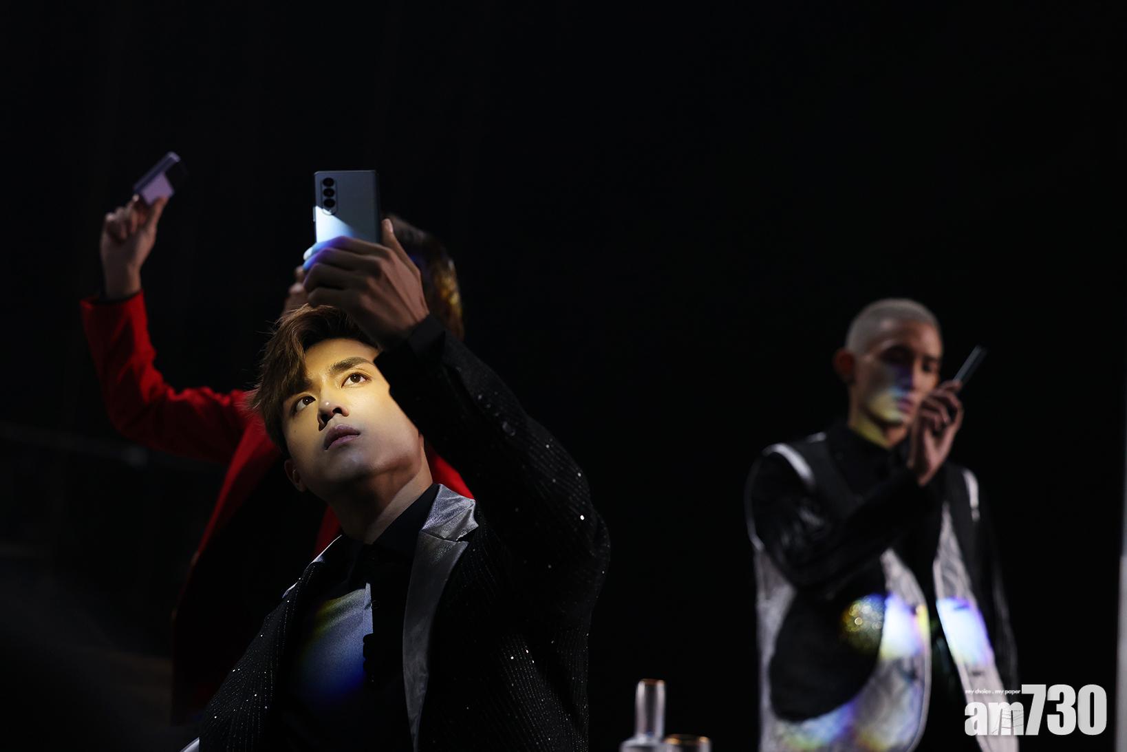 追求多功能、喜歡手機當平板電腦使用的隊長楊樂文(Lokman)和副隊長江𤒹生(AK)試用過Galaxy Z Fold3 5G摺機後愛不釋手,是次拍攝聯同鍾情大畫面的姜濤、陳卓賢(Ian)、王智德(Alton)及邱士縉(Stanley)以黑色為主調的西裝造型亮相。難得合體的MIRROR亦趁休息期間,運用超大屏幕玩手遊,與兄弟即時battle,整個錄影廠充滿歡樂氣氛。