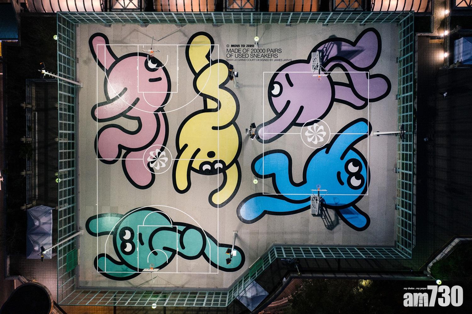 穿舊了的運動鞋,下一站未必是垃圾桶。Nike最近在葵涌屋邨住宅區打造「石籬Grind主場」,球場地面正是以2萬對回收運動鞋舖設而成,更請來著名插畫家兼玩具設計師James Jarvis設計,在地面繪上其標誌性圓型公仔打籃球的動態,令社區球場即時升格成一幅巨型公共藝術畫布,相信很快會成為下一個打卡熱點。