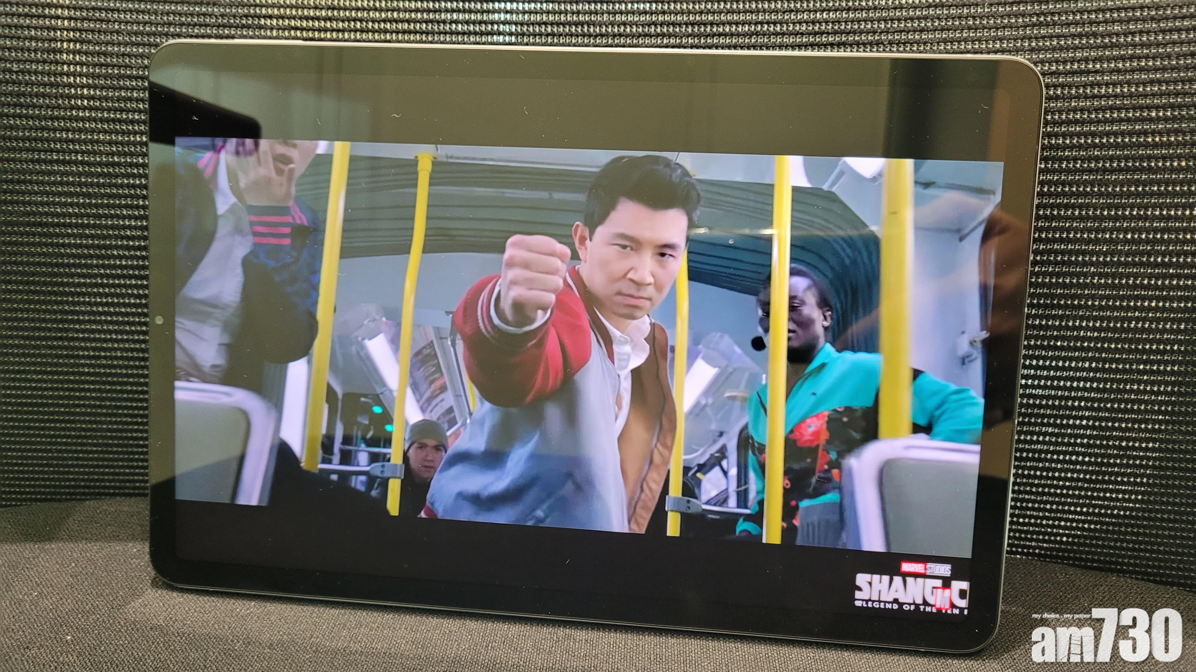 平板主打聲畫表現,對應HDR 10格式影片、Dolby Vision與Dolby Atmos。官方稱平板具備TrueTone真彩顯示功能,通過前後雙光感應器對環境光顏色分析,也對色溫進行補償,讓畫面顯示更接近真實環境。小編開盡音效試播Marvel話題作《尚氣與十環幫傳奇》,多得平板四處角落均內藏大單元喇叭,令音色極具臨場感,加上2.5K靚芒支援1,500:1對比度與P-3電影級色域,畫面色水豐富,以這種價位實在不俗!值得一提,平板內置陽光屏2.0技術,因應環境自動調校亮度,減低眼睛疲勞。