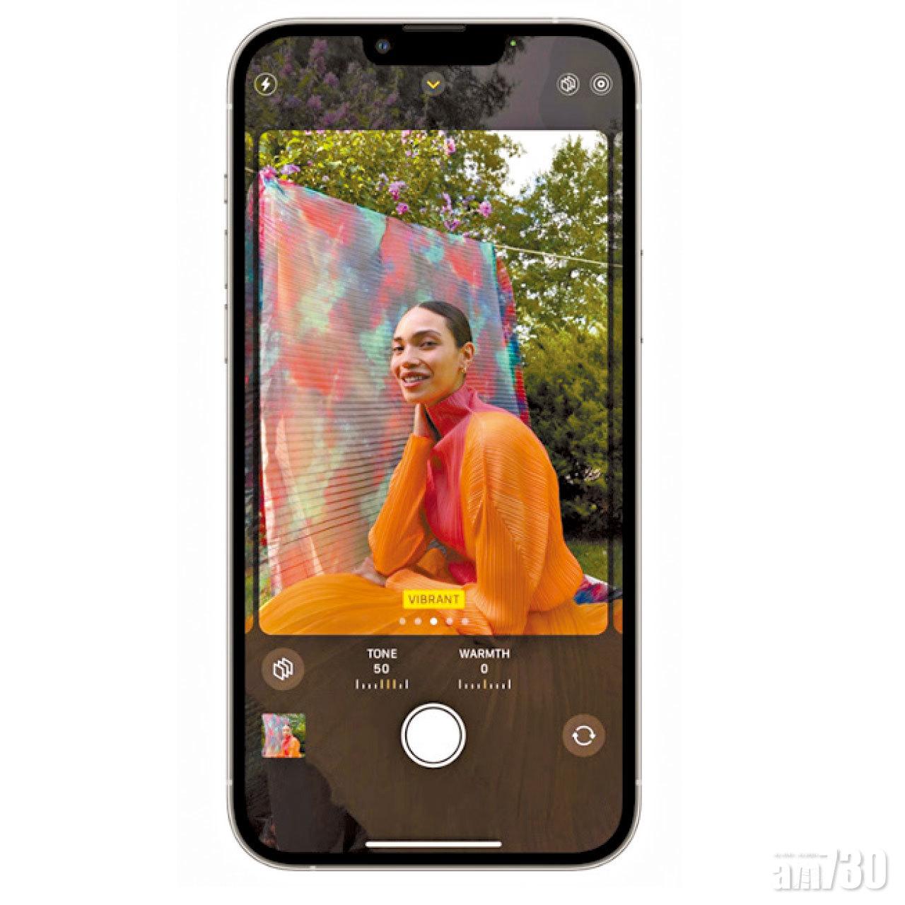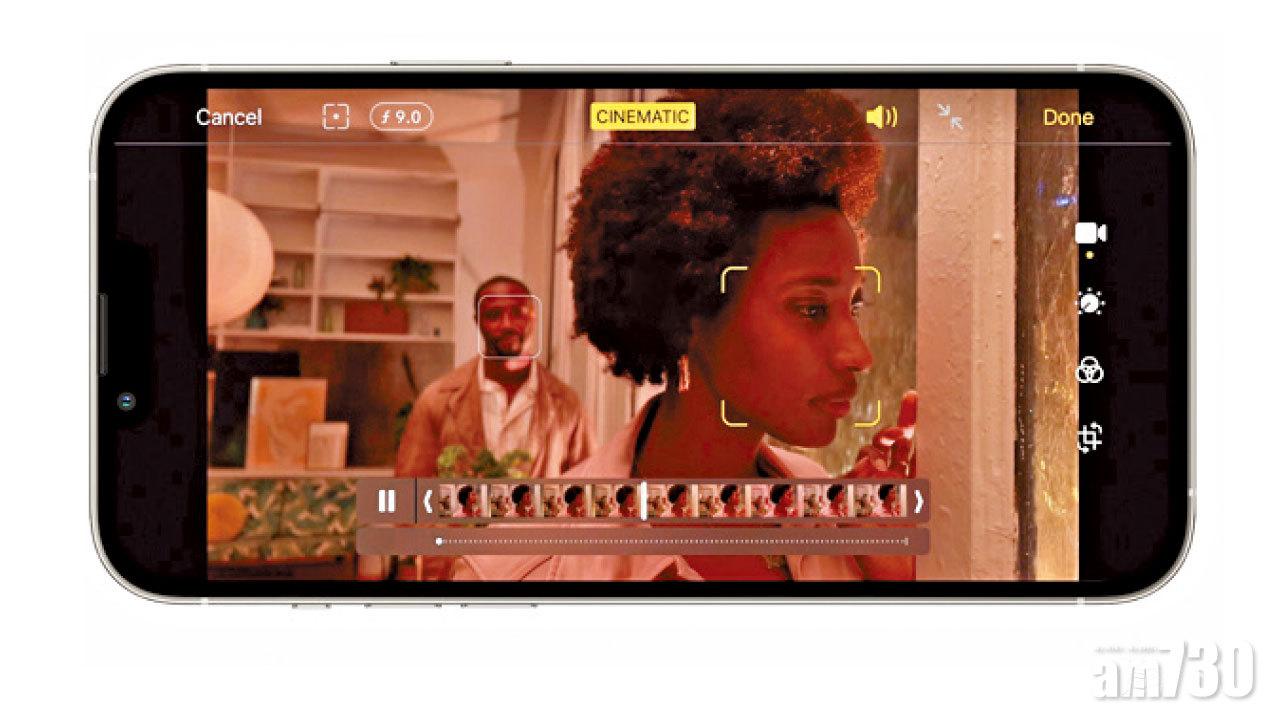 新機強化攝力,全新1.7微米像素廣角鏡頭,能收集多47%光線,而上代Pro Max才有的移動式光學影像防震功能(sensor shift),也下放至iPhone 13系列。手機提供全新「攝影風格」與「電影效果」模式,前者實時自訂影像風格,後者更有景深過場效果。電量方面,iPhone 13較上代多2.5小時至19小時;而mini也多1.5小時。