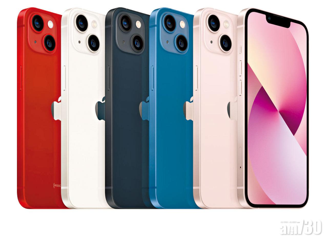 iPhone 13/13 mini提供粉紅、藍、午夜暗色、星光色和(PRODUCT)RED選擇。
