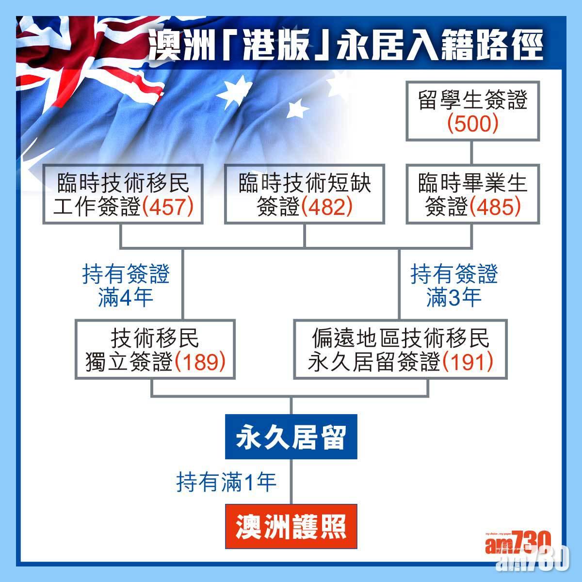 其實2020年7月香港推行「港版國安法」後,澳洲總理莫理遜(Scott Morrison)公布延長港人的畢業生和臨時工作簽證5年,更表示日後會有「永久居留的途徑」,當時並未公布任何具體條款,現相隔16個月後,有突破性進展,並公布一系列申請永居方法。