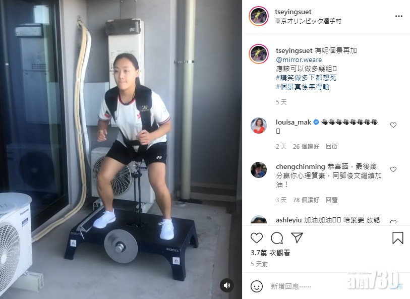 謝影雪早前做負重深蹲訓練時,一邊播著MIRROR歌曲《IGNITED》,看來她也是鏡粉。